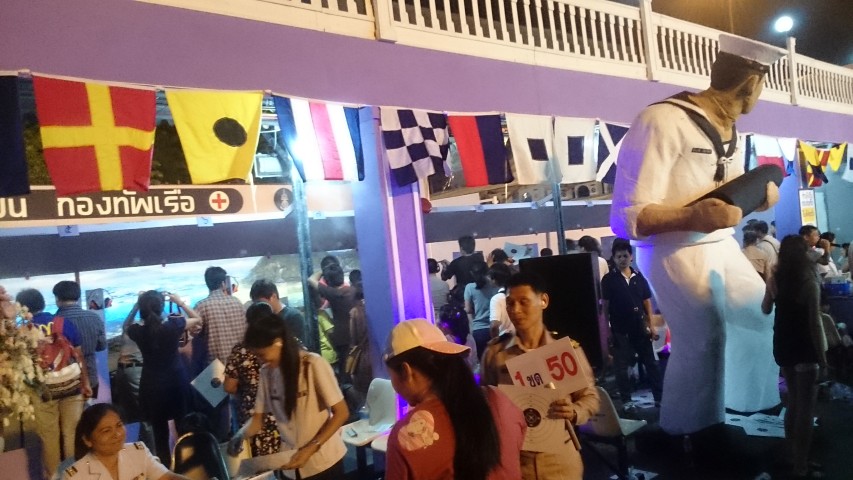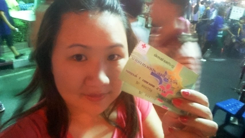 ก่อนเข้างานเราต้องซื้อบัตรผ่านประตูกันก่อน คนละ 20 บาท เพื่อสมทบเข้าสภาการชาดไทย