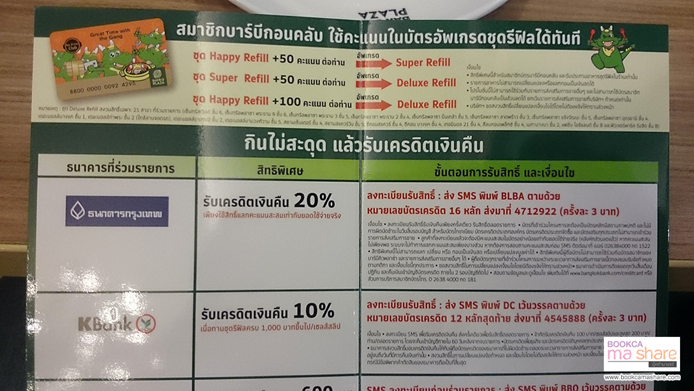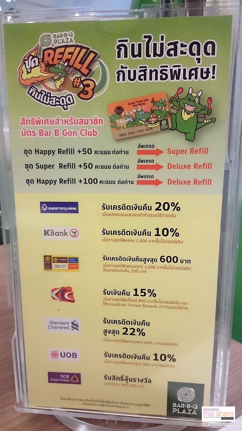 เชื่อว่าหลานคนที่ติดใจในรสชาติน้ำจิ้มของ Bar B Q Plaza จะต้องเฝ้ารอโปรโมชั่นดีๆ ที่ทาง Bar B Q Plaza จะปล่อยออกมาปีละ 1 ช่วงเวลาเท่านั้น และด้วยฤกษ์งามยามดี ในที่สุดโปรโมชั่นที่รอคอยก็ นั่นคือ ชุด Refill สุดคุ้ม (หรือที่เราๆ เข้าใจวันในนามของบุฟเฟ่ต์นั่นเอง)