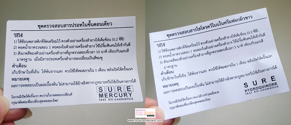 บุ๊คก้าขอจบการทดสอบไว้เพียงเท่านี้นะคะ และขอให้ข้อมูลเพิ่มเติมเกี่ยวกับชุดทดสอบไว้ด้านล่างนี้ เผื่อเพื่อนๆ มีครีมต้องสงสัยที่ต้องการตรวจสอบที่บ้านค่ะ