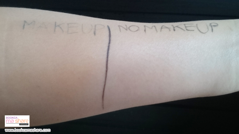 ทั้งฝั่งที่ลง Make up และฝั่งที่ไม่มี Make up ก็ไม่มีคราบจากการใช้สเปย์กันแดดเลยค่ะ