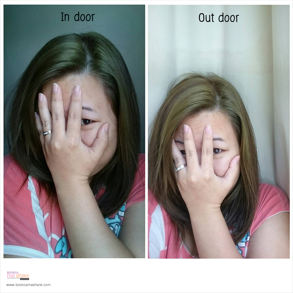 นี่คือสีผมบุ๊คก้า ณ ปัจจุบัน ด้านบนคือสีผมจริง และด้านล่างคือสีผมที่เคยผ่านการย้อมสีมาก่อน โทนก็จะออกเป็นโทนแดงแบบที่เห็น