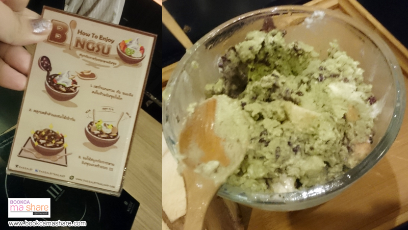 ปิดท้ายด้วยของหวานอันนี้ชืออะไรไม่แน่ใจ แต่นางมีน้ำแข็งใสอยู่ด้านล่าง ตามด้วยถั่วแดงบด ตบด้วยไอติมชาเขียว และปิดท้ายด้วยวิปครีม เสิร์ฟหร้อมกับถั่วแดง, แป้งต๊อก และขนมปังปิ้ง