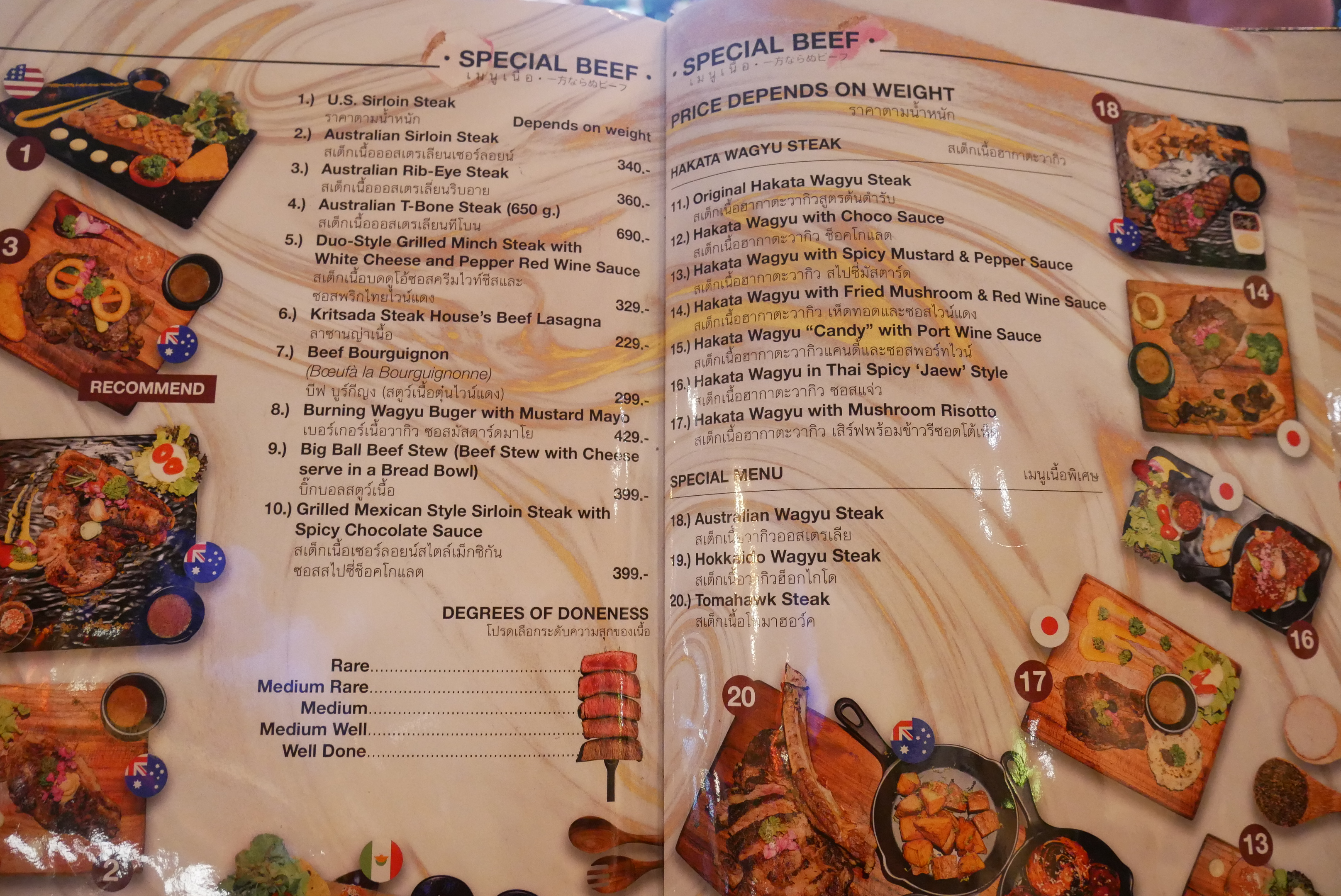แต่ทั้งหมดที่เล่ามา ไม่ใช่จุดเด่นของร้าน แต่เป็นสเต็กเนื้อที่ขึ้นชื่อ เรื่องลือ จนบล็อกเกอร์ดังๆ หลาย Channel ต้องมารีวิว แต่เสียดายที่เราไม่ได้ลองกินสเต็กส์เนื้อของร้าน Kritsada เพราะว่าเราไม่กินเนื้อจ้า