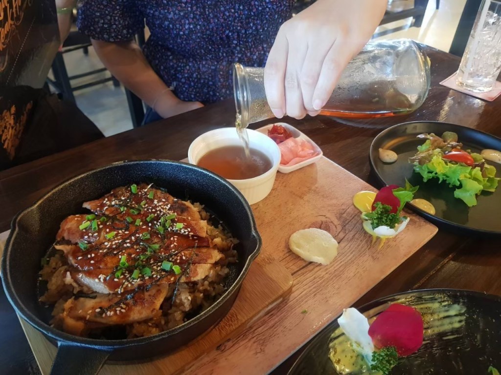 เมนูต่อไป ข้าวผัดกระเทียมหน้าหมูย่างเทริยากิ เป็นเมนูที่คิดแล้วคิดอีกก่อนสั่ง ด้วยความที่มาร้านสเต็ก แต่มีเมนูอาหารญี่ปุ่นให้สั่งด้วย เลยทำให้ไม่แน่ใจว่าจะอร่อยไหม